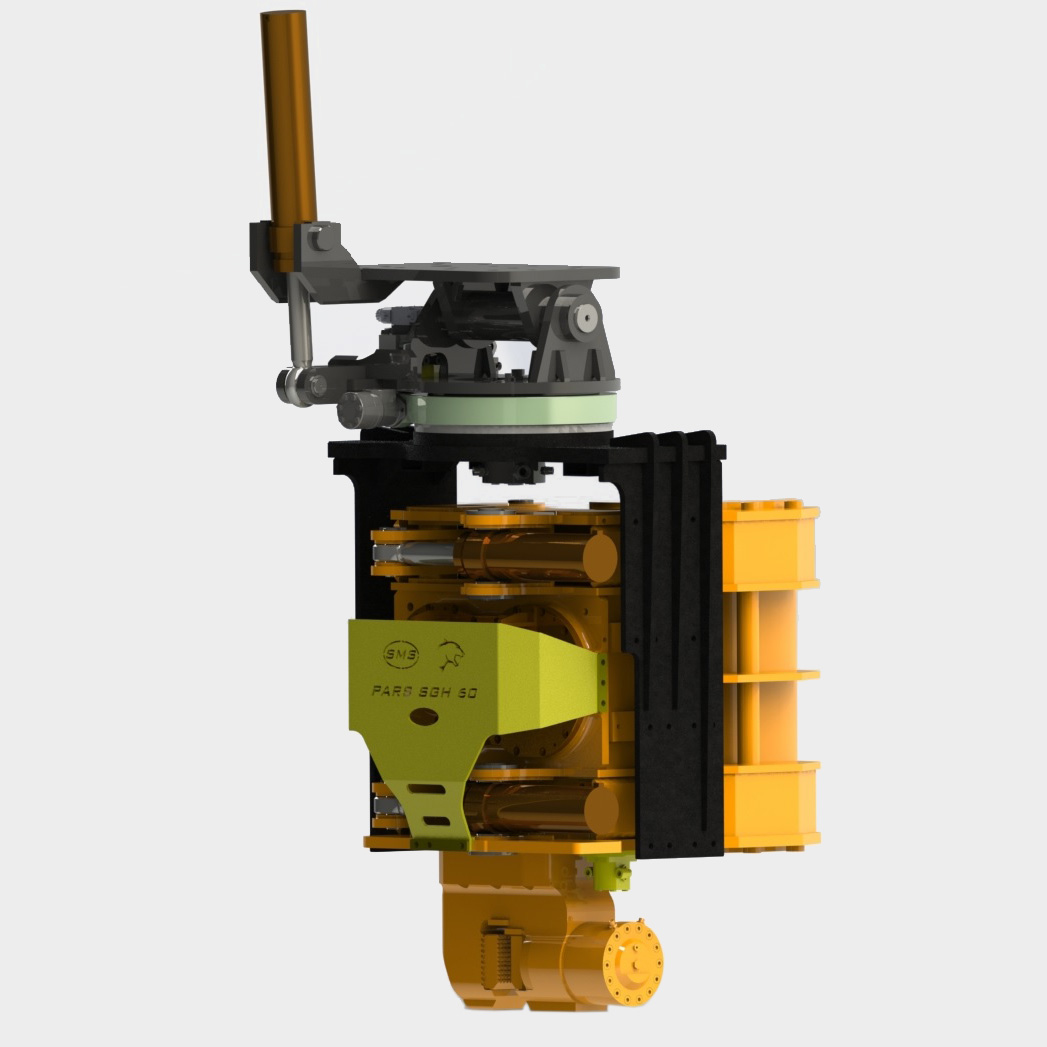 It is an easily mounted vibratory driver with side grip designed for 28 - 32 ton excavators. SGH series vibratory hammers allow the removal of pipes and pipe type materials, and their hammering without the need for an operator by inclining. PARS SGH series vibratory hammer unit with side grip, 360° rotation around its axis, max. It can drive up to 30° degrees. Thanks to the electronic control system, the nail angles can be seen and smooth nailing can be done according to the ground.
