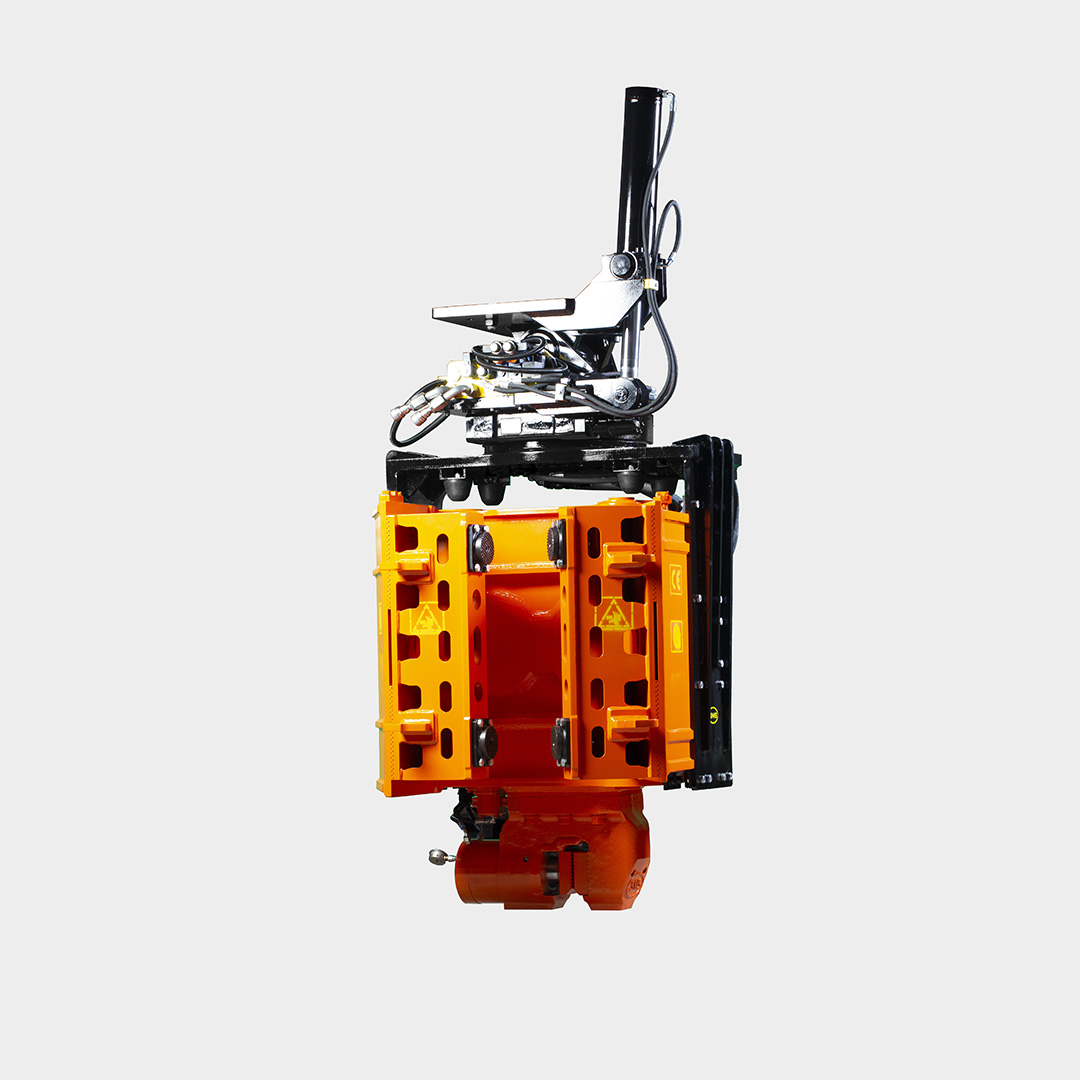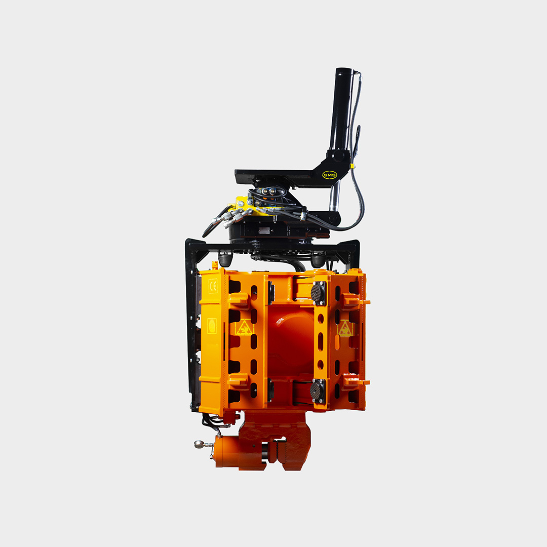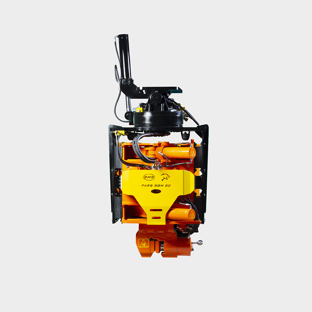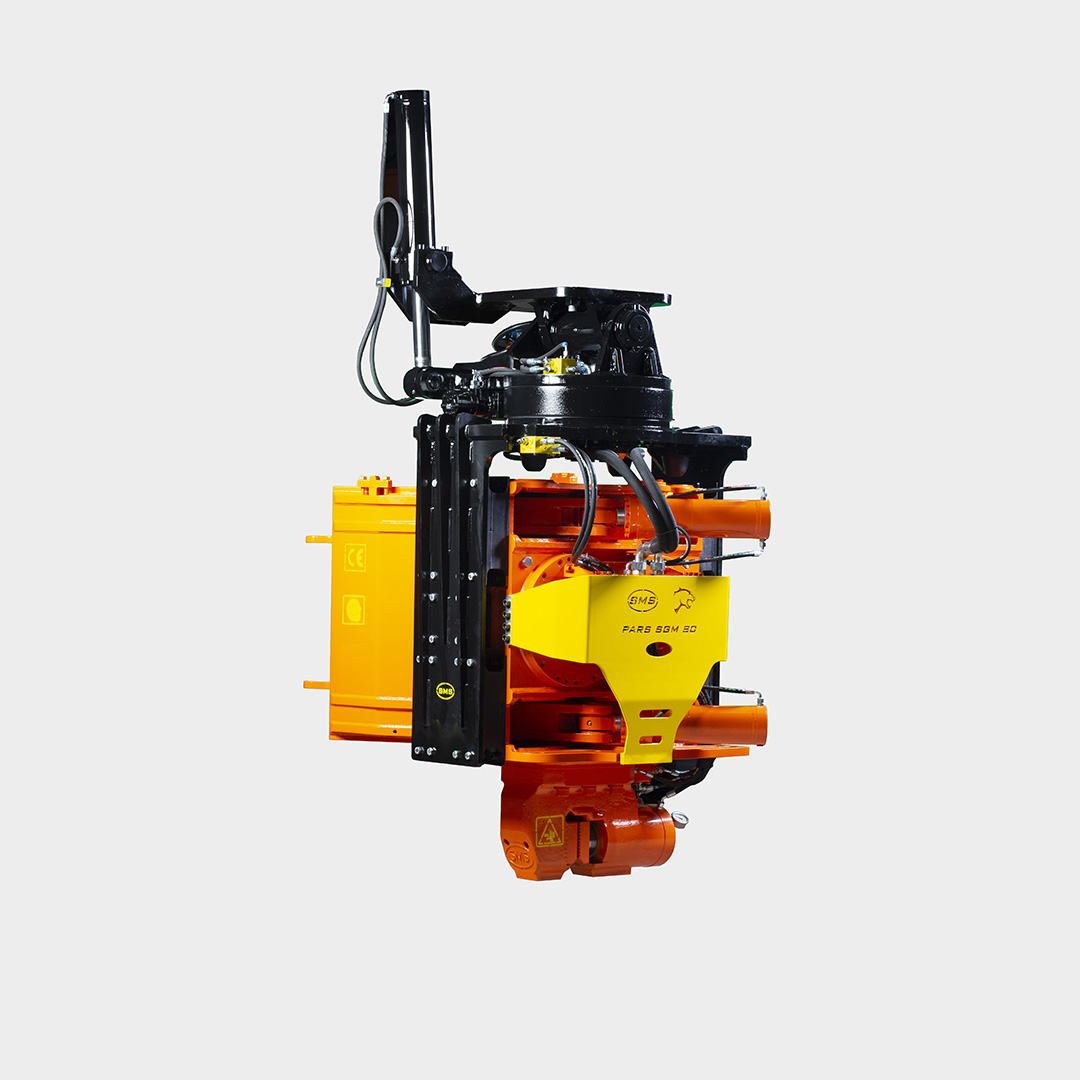 It is an easily mounted vibratory driver with side grip designed for 34 - 42 ton excavators. SGMK series vibratory hammers are designed as modular, allows driving up to max 30° inclination or flat, materials such as pipes, sheet pile H type, etc. The PARS SGMK series side grıip vibratory hammer unit attaches to the end of the bucket arm of an excavator. The vibration unit can be rotated vertically and horizontally.